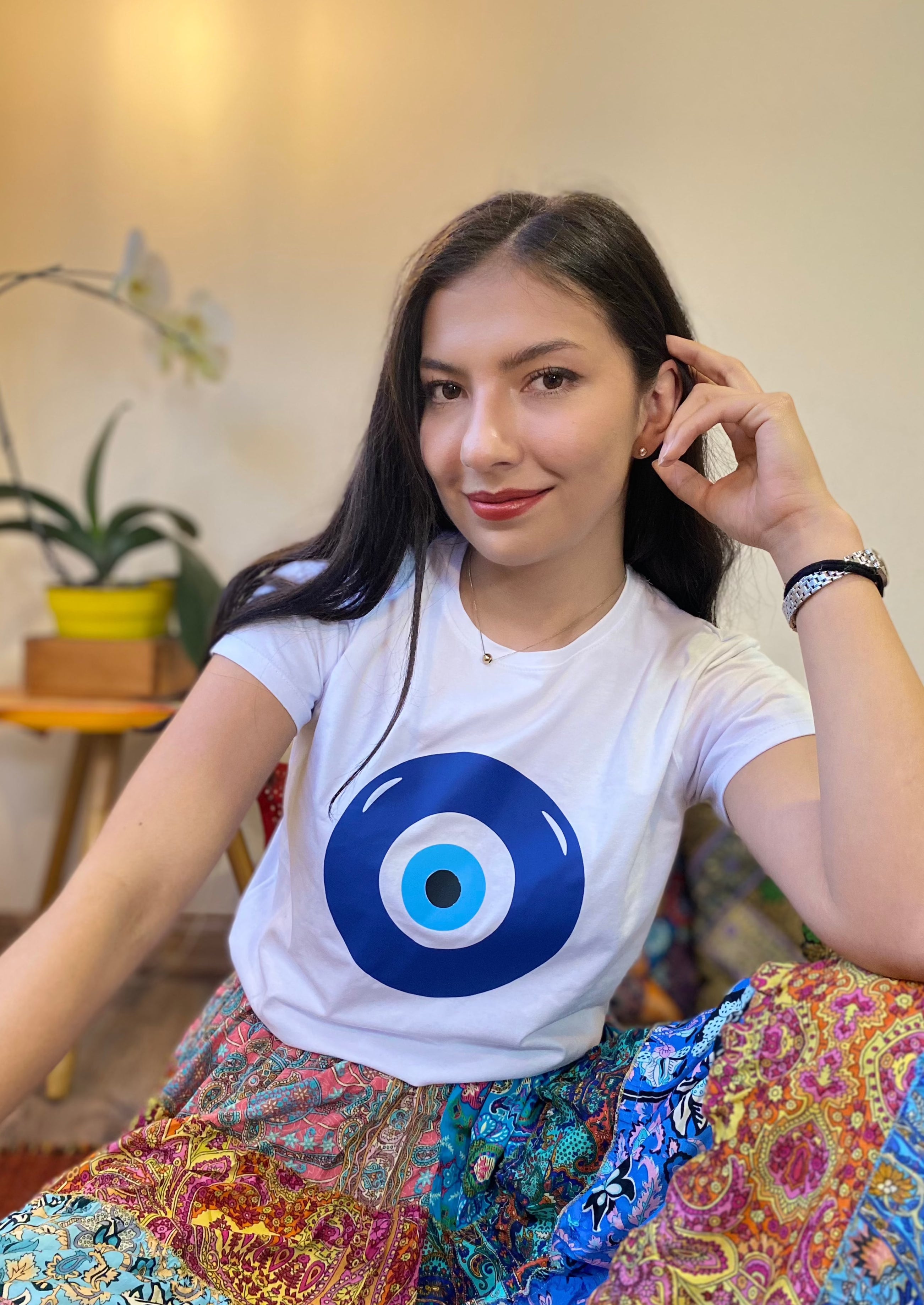 Camiseta unicolor de cuello redondo con diseño estilo boho, confeccionada en una mezcla de algodón y poliéster. Presenta mangas cortas y un ajuste ligeramente ceñido a la silueta. Ideal para combinar con tus pantalones o faldas favoritas.