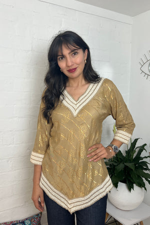 💬 “Una blusa divina. Los bordados y el brillo dorado la hacen diferente. ¡Súper fresca y combinable!” — Paula, Bogotá