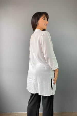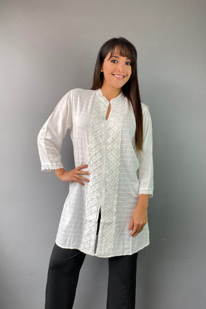 Blusón Seleno, confeccionado en algodón hindu, una tela suave y fresca que puedes lucir tanto como blusa o vestido corto. Perfecto para añadir versatilidad y estilo a tu guardarropa. Este blusón es abierto y tiene bolsillos