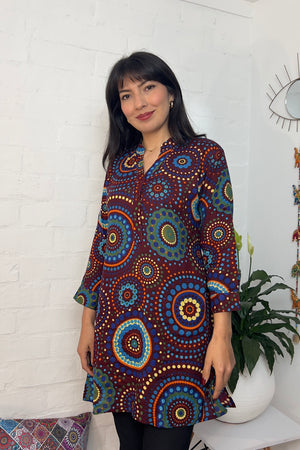 Descubre el Blusón Seleno, confeccionado en suave y fresco rayón hindú, ideal para esos días donde quieres lucir cómoda y con estilo. Su diseño cerrado al frente le aporta un toque elegante y sutil que realza su versatilidad: úsalo como una blusa sofisticada o un vestido corto casual.