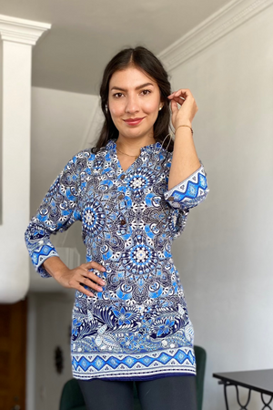 Blusón Seleno, confeccionado en rayón hindú, una tela suave y fresca que puedes lucir tanto como blusa o vestido corto. Perfecto para añadir versatilidad y estilo a tu guardarropa.
