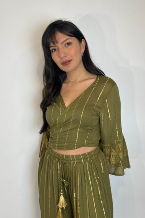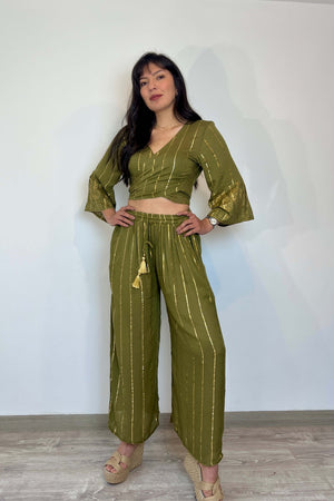 Este conjunto de 2 piezas está confeccionado en algodón hindú suave, con delicados detalles dorados que le aportan un toque de sofisticación. Su diseño fluido y relajado lo convierte en la elección perfecta para eventos especiales, escapadas o para lucir espectacular sin esfuerzo.