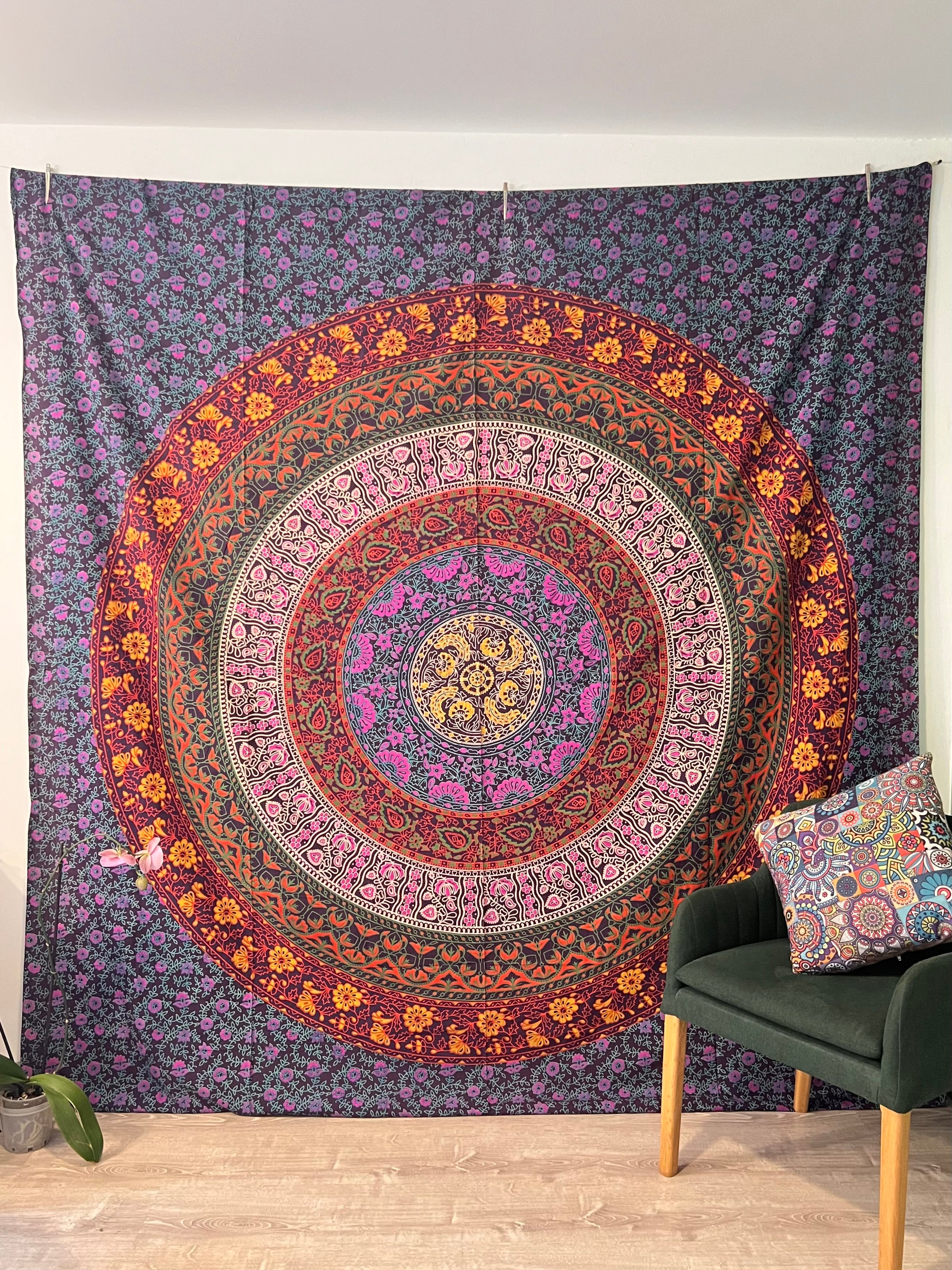 Telas Mandalas Seleno: transforma tus espacios con estas piezas únicas, ideales como cubrecamas o para decoración. Hechas en 100% algodón hindú e impresas artesanalmente, añadirán un toque de elegancia y buena energía a tu hogar. ¡Un producto exclusivo que no querrás perderte!