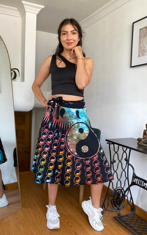 Falda corta envolvente, confeccionada en algodón hindú. La tela está impresa con técnicas artesanales, importada de la India. Talla Unica