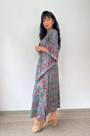 Vestido Kaftan una prenda versátil y elegante que transformará tu estilo. Hecho en seda hindú, ofrece suavidad y una sofisticación incomparable. Perfecto para cualquier ocasión, desde salidas casuales hasta eventos especiales.
