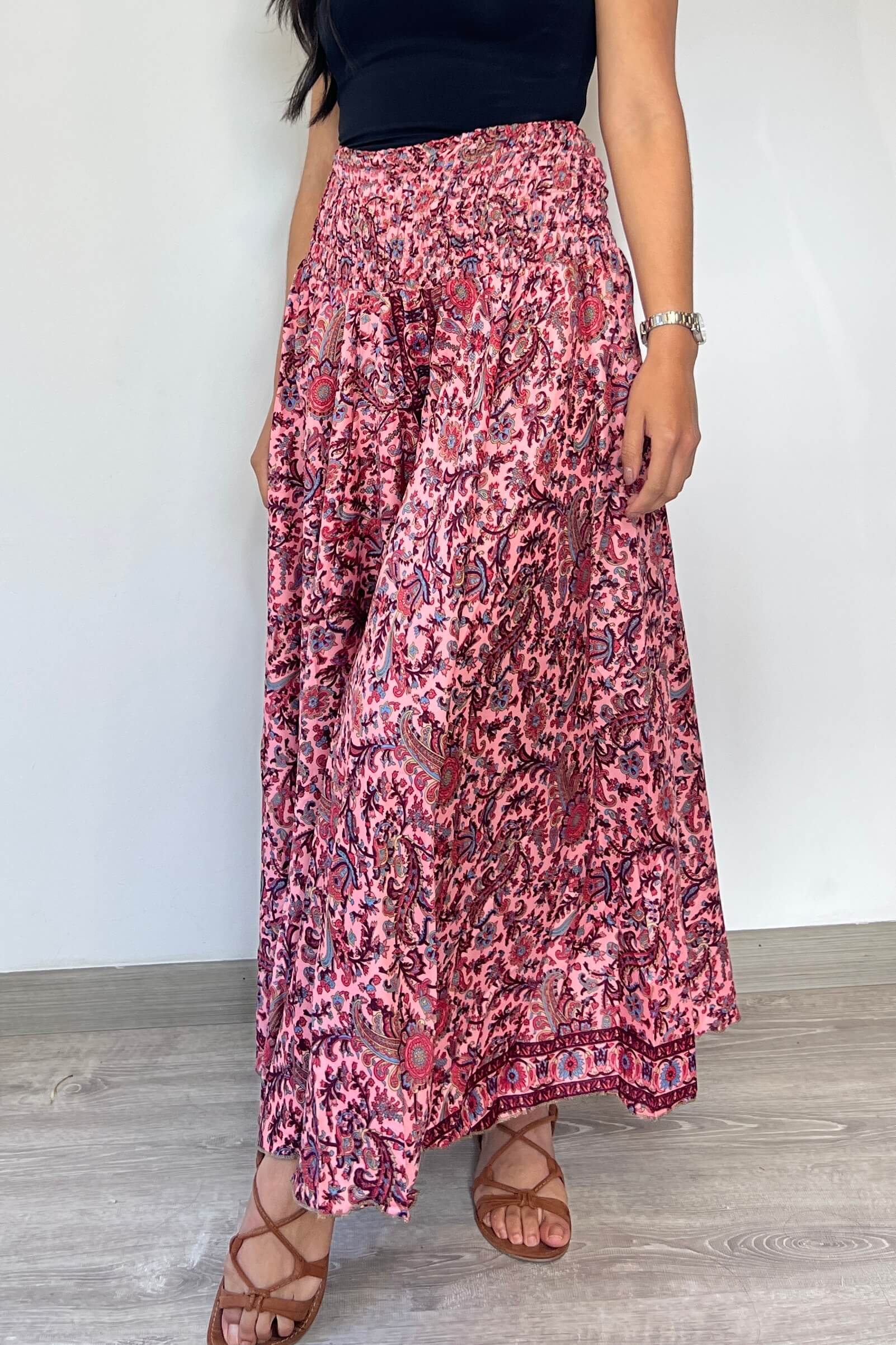 Este pantalón de tiro alto está confeccionado en seda hindú de textura suave y fluida. Su bota ancha y cintura elástica aportan movimiento, comodidad y un estilo bohemio irresistible. Una prenda que habla de elegancia natural y detalles hechos con alma.