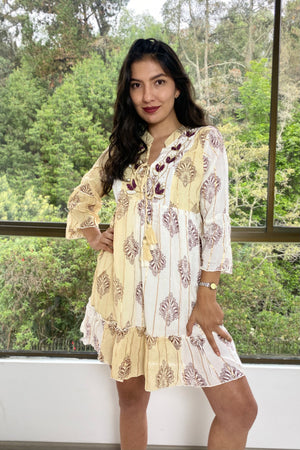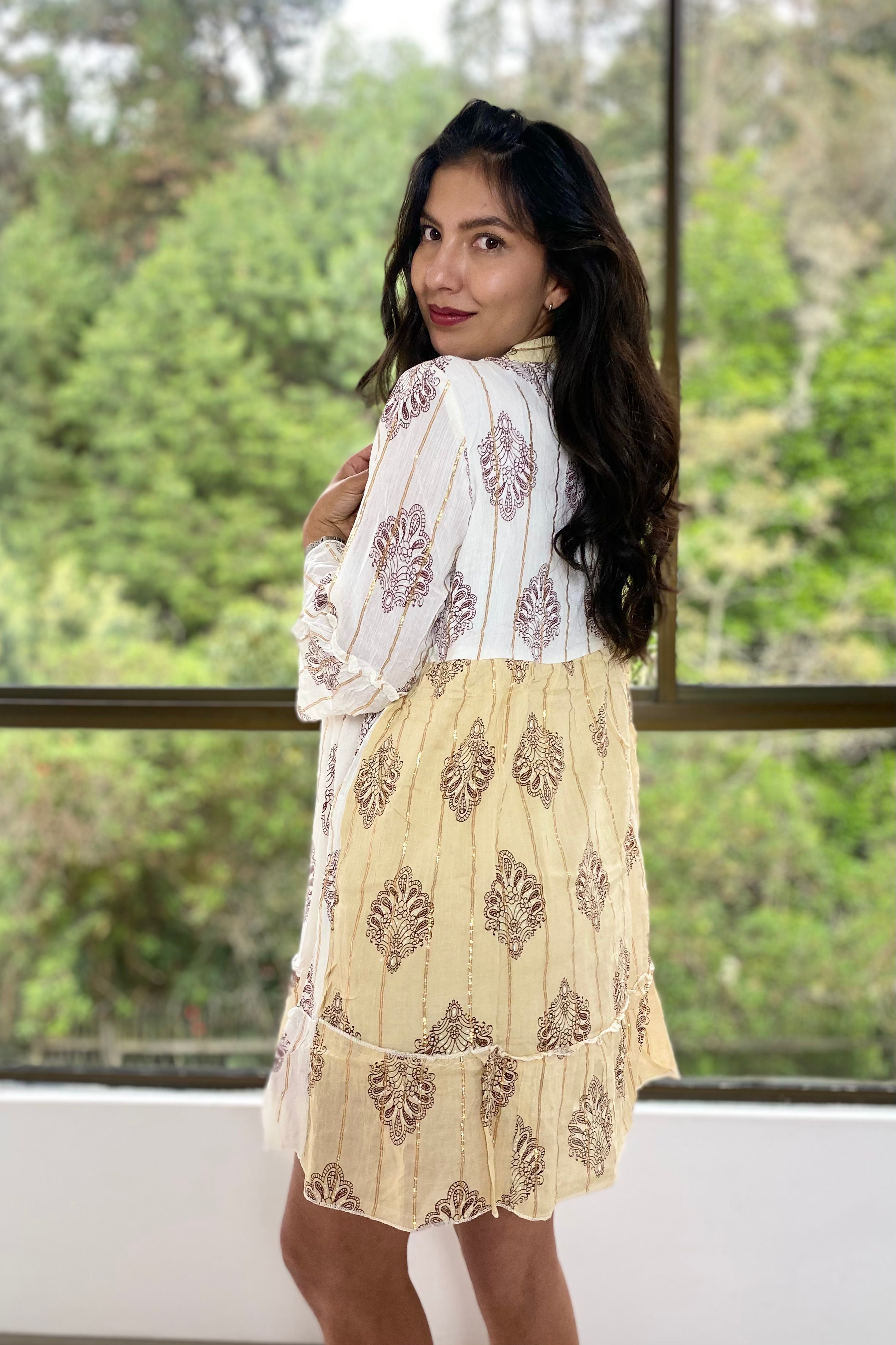 Un vestido corto, holgado y confeccionado en algodón orgánico, una tela que combina suavidad, frescura y un caída perfecta. Este vestido no solo es elegante, sino también cómodo, ideal para realzar tu estilo en cualquier ocasión especial.