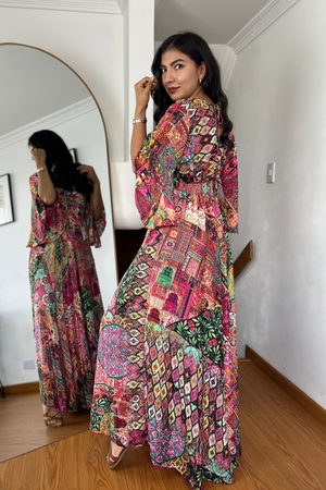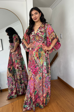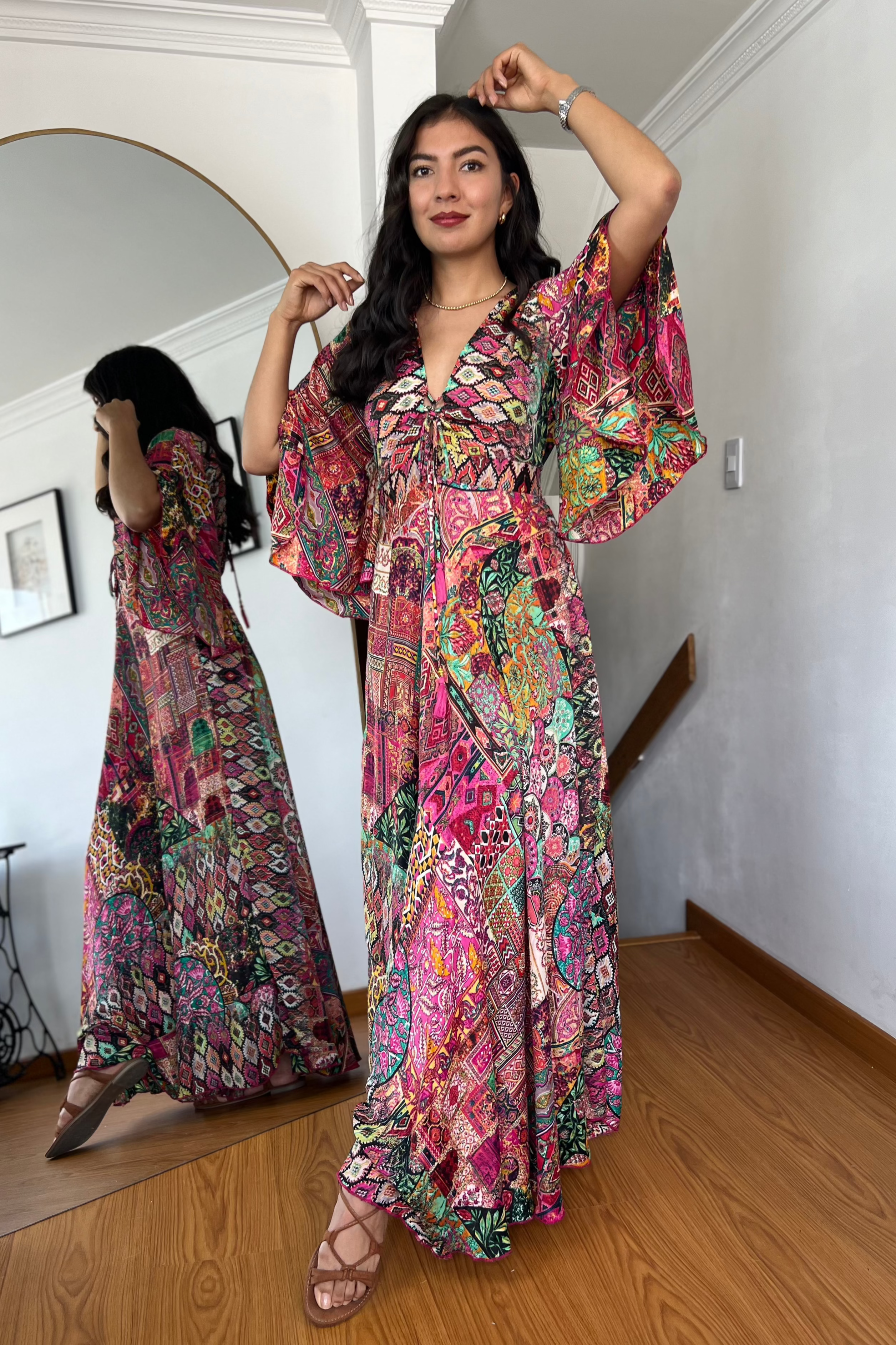 Vestido Kaftan una prenda versátil y elegante que transformará tu estilo. Hecho en seda hindú, ofrece suavidad y una sofisticación incomparable. Perfecto para cualquier ocasión, desde salidas casuales hasta eventos especiales.
