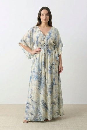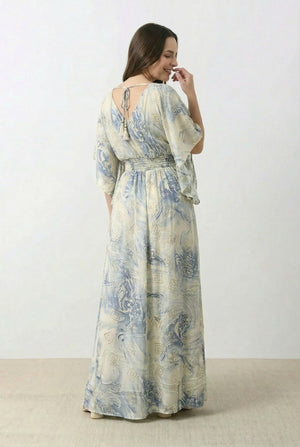Vestido Kaftan una prenda versátil y elegante que transformará tu estilo. Hecho en  seda hindú, ofrece suavidad y una sofisticación incomparable. Perfecto para cualquier ocasión, desde salidas casuales hasta eventos especiales.